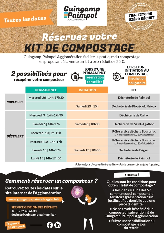 Nous vous informons que de nouvelles dates de vente de kits de compostage sont programmées pour la fin d’année dans les déchèteries du territoire.