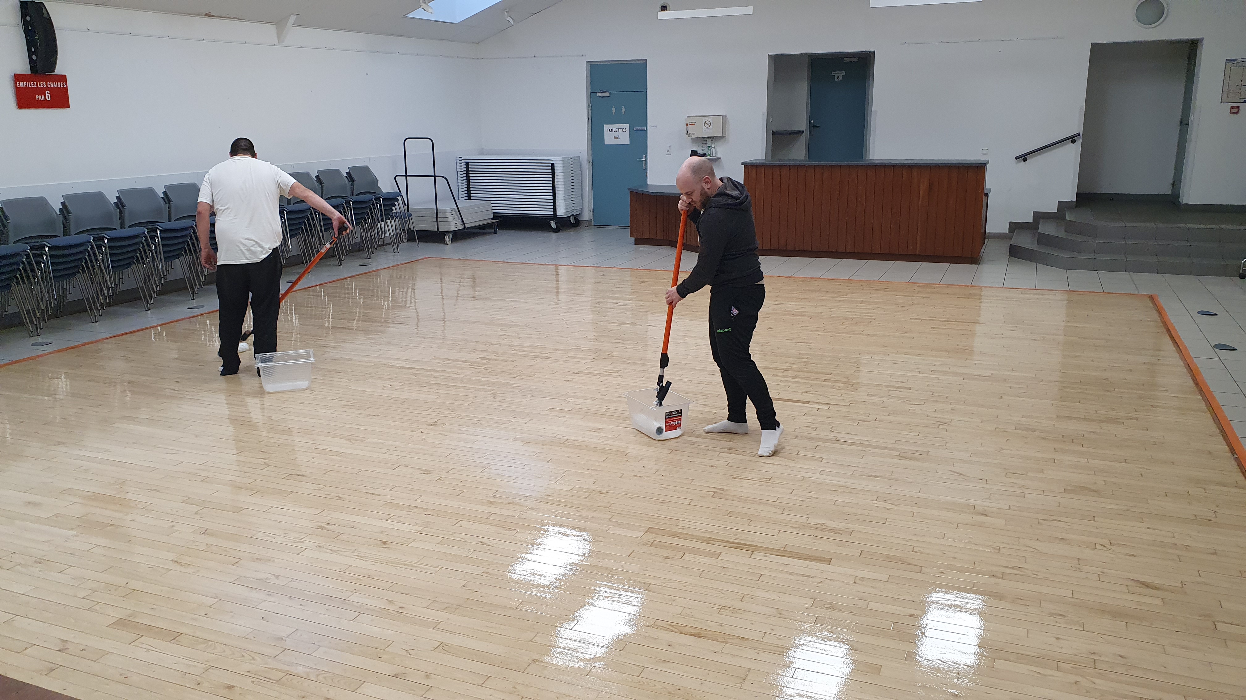 Après un ravalement extérieur, la salle des fêtes de Loguivy s’est offerte une réfection du parquet avec remplacement de certaines lames, ponçage et vernissage.