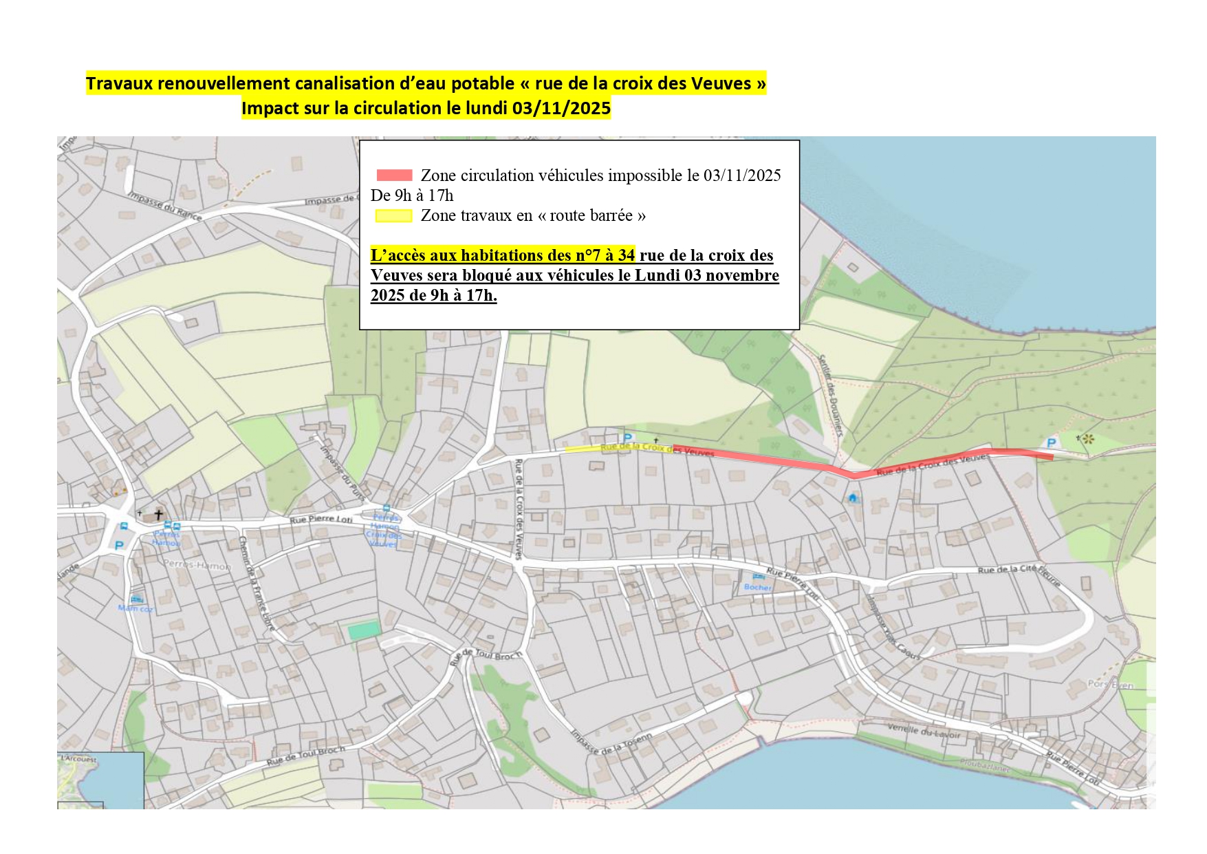 La voie sera bloquée à la circulation de 9h à 17h, pour les habitations des n°7 à 34 de la croix des Veuves.