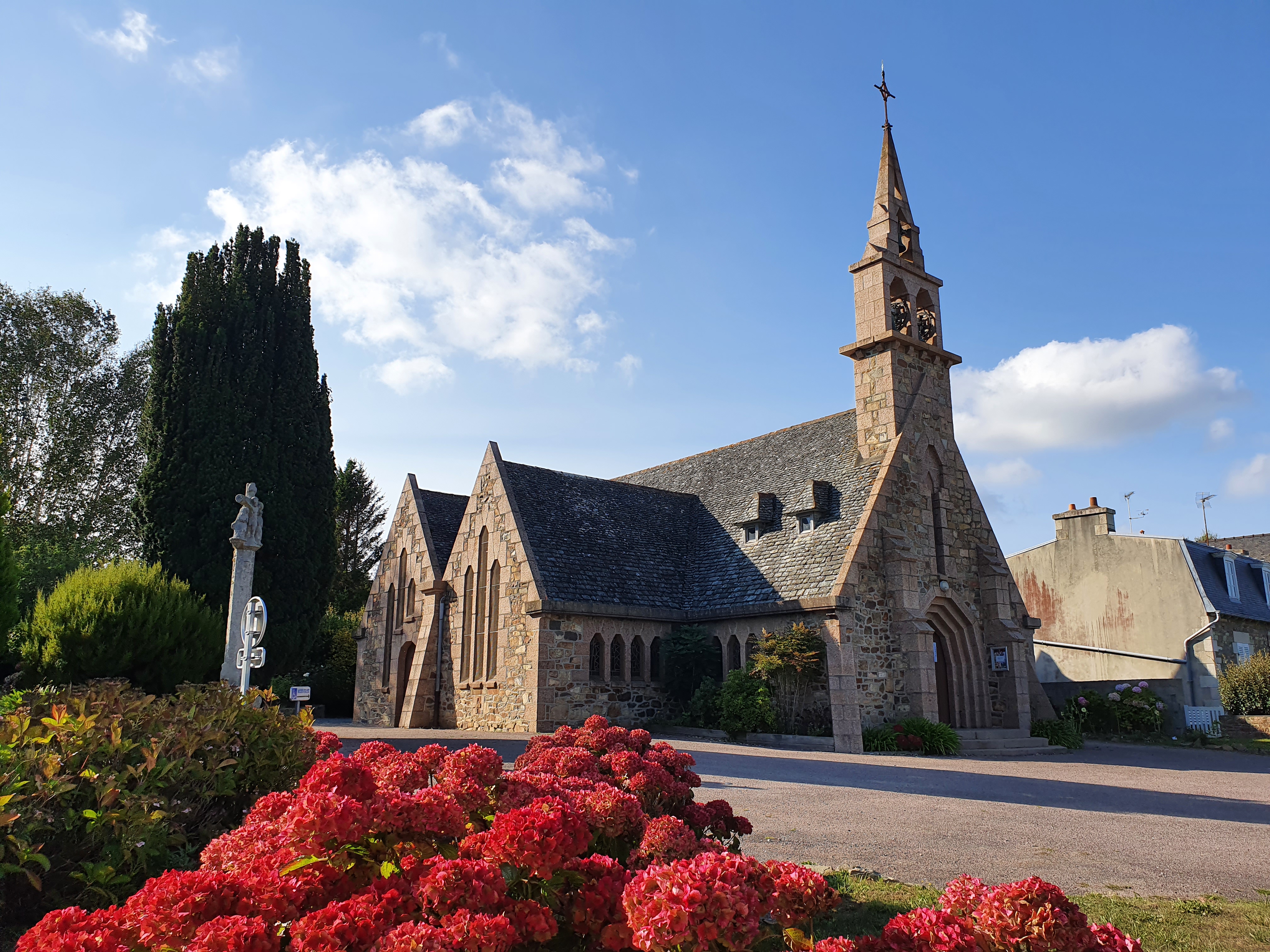 Comme en bien d’autres lieux de la côte d’où l’on pouvait observer le retour des bateaux, il fut bâti un lieu de recueillement et de prières. Suivez donc le chemin qui descend vers la mer : à quelques mètres de la grève, sur la rive faisant face à la cale de Pors-Even, vous y trouverez leur chapelle. Construite en 1868, elle porte le même nom que la Pointe sur laquelle elle fut édifiée. Une statue de Notre-Dame des Marins demeure en ces lieux. C’est l’Archevêque de St-Brieuc - Mgr David - qui en avait fait commande.