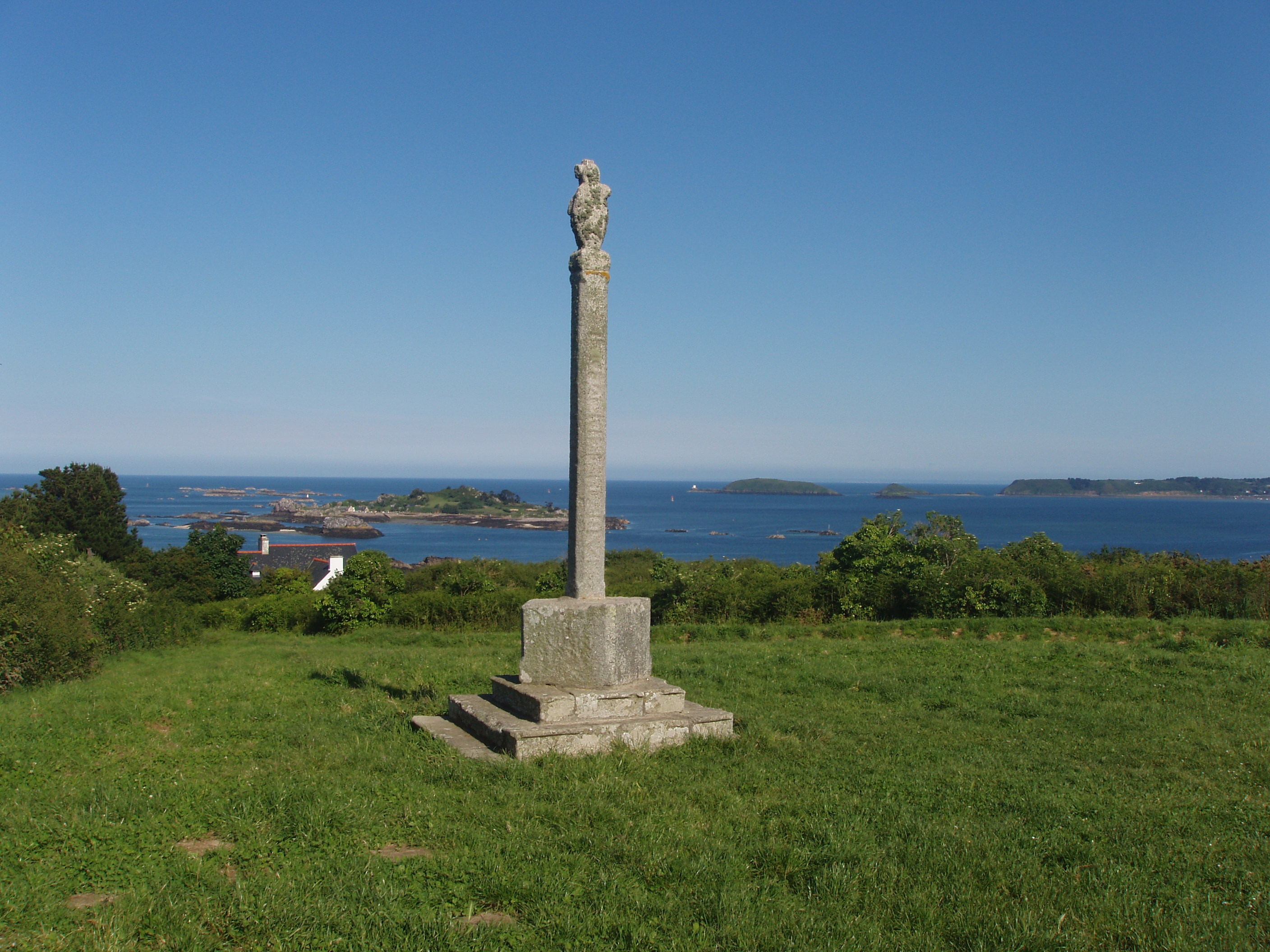 Cette colonne de section carrée, qui marque l’avant-dernière station de la Via dolorosa conçue par l’abbé Cornic, comporte une Vierge portant l’Enfant Jésus qui tend les mains à un jeune garçon dressé vers lui sur la pointe des pieds, les bras levés vers la Vierge. Ce monument semble avoir été construit à la mémoire de Jean Cyprien, fils d’Hervé Guillemot, écuyer et sieur de Brenzé. Cet enfant de douze ans est trouvé mort en 1690 sur une grève du village de Kerroc’h. Hervé Guillemot et le parrain de l’enfant, Ian Cornic, oncle de l’abbé, auraient fait ériger ce monument à cette occasion.